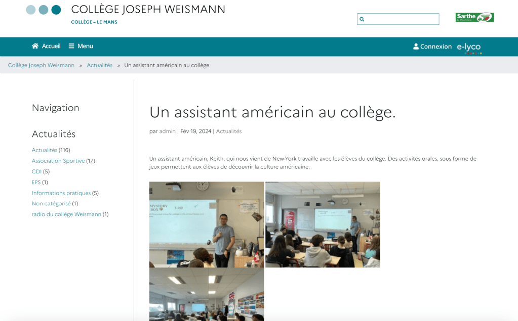 Keith teaching a 3ème classe in the Collège Joseph Weismann. Original link click here.